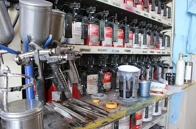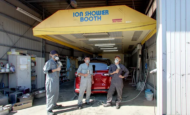 工場内には100色以上の塗料を常備したミキシングマシーンを設置しております。熟練の職人がお車に最も近い色を調色し、ムラなくきれいに仕上げます。